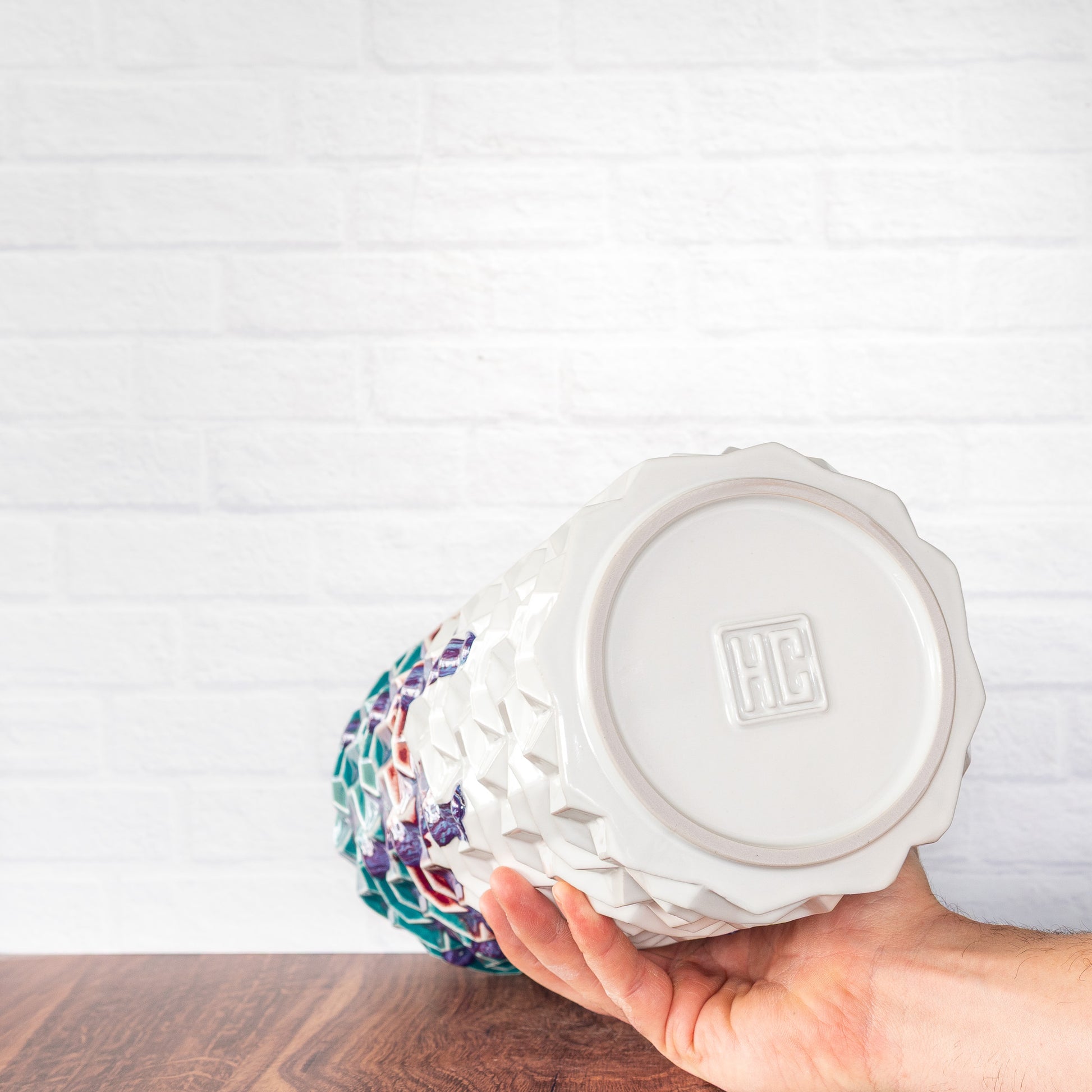 Every Hammerly Ceramics piece is handmade by Curt in his studio outside Denver, Colorado. Starting from a prototype designed in 3D modeling software, each design has custom molds produced in-house. These unique molds are cast in porcelain, fired, coated in handmade glazes, and high-fired again in a custom computer-controlled gas kiln.