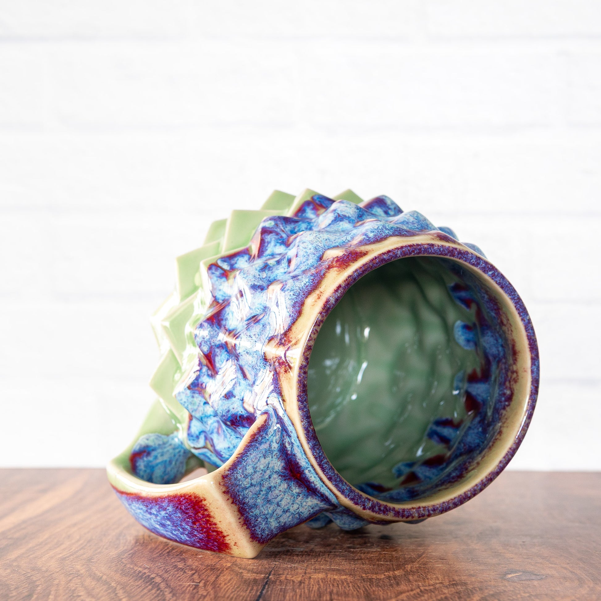 The final mug design of 2024. Every Hammerly Ceramics piece is handmade by Curt in his studio outside Denver, Colorado. Starting from a prototype designed in 3D modeling software, each design has custom molds produced in-house. These unique molds are cast in porcelain, fired, coated in handmade glazes, and high-fired again in a custom computer-controlled gas kiln.