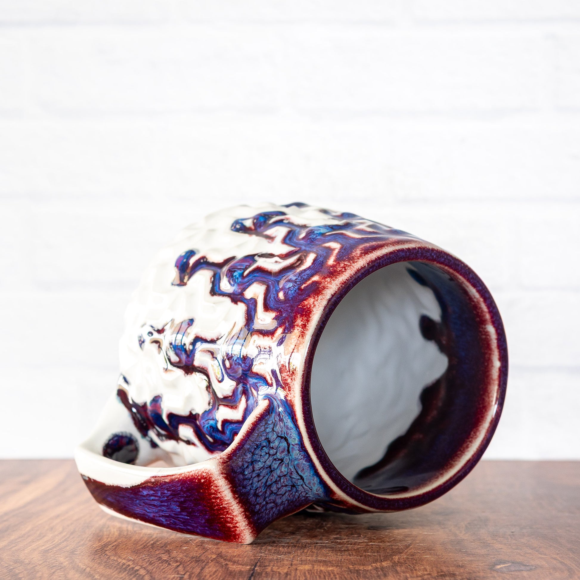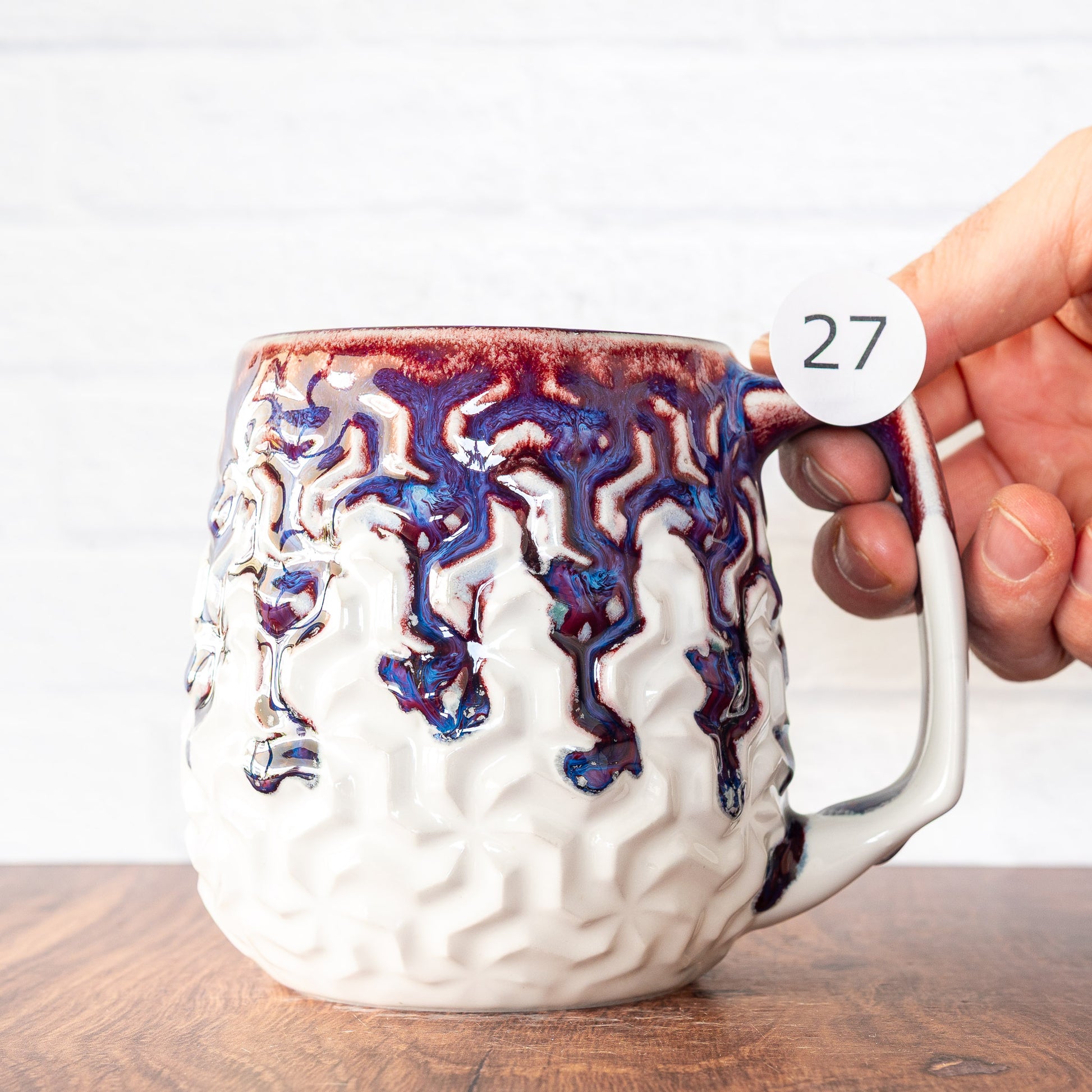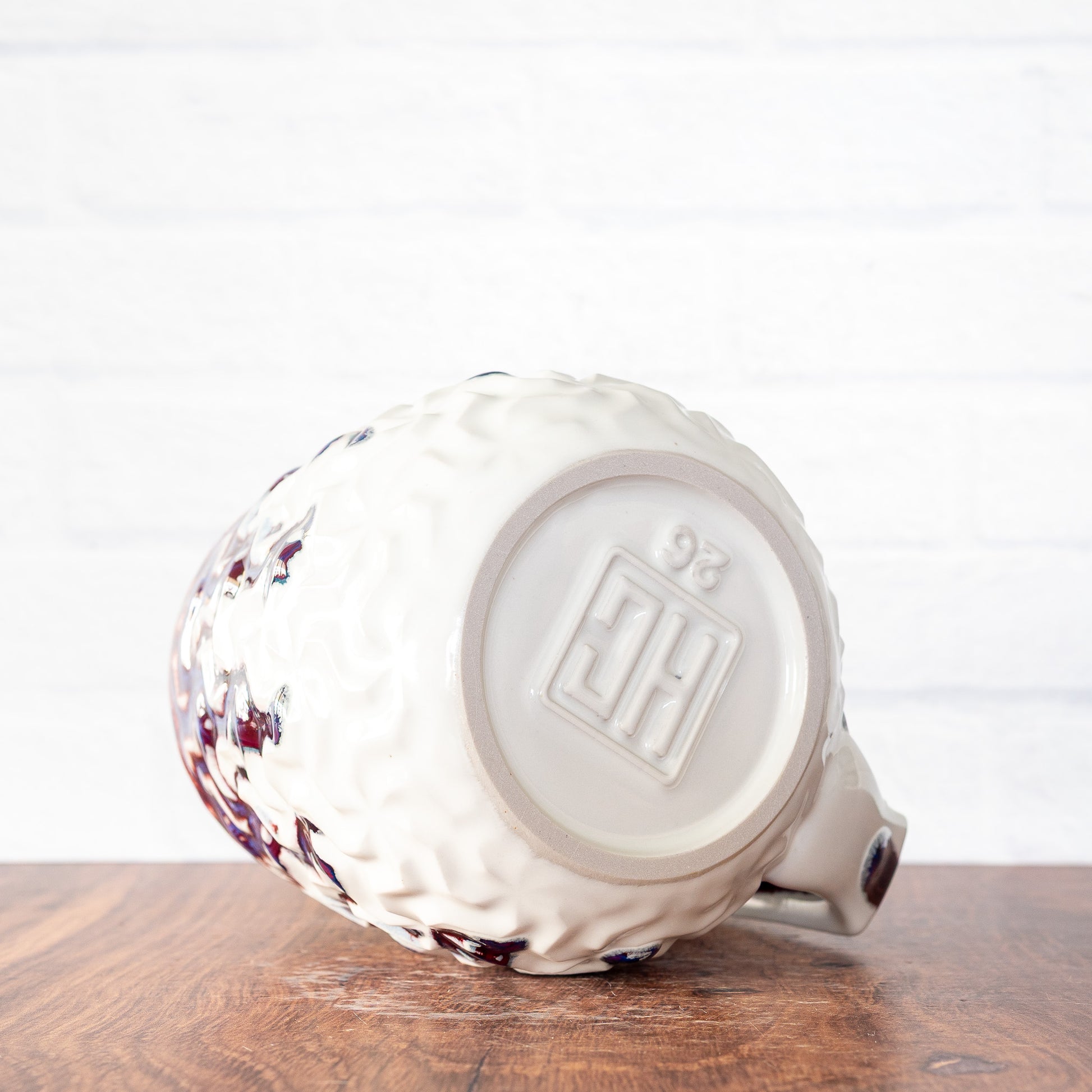 Each mug is made to be used, designed to be as comfortable and pleasing as possible, and finished in high-quality, beautiful, colorful glazes. Made from high-fired, strong, durable porcelain, food, microwave, and dishwasher safe.