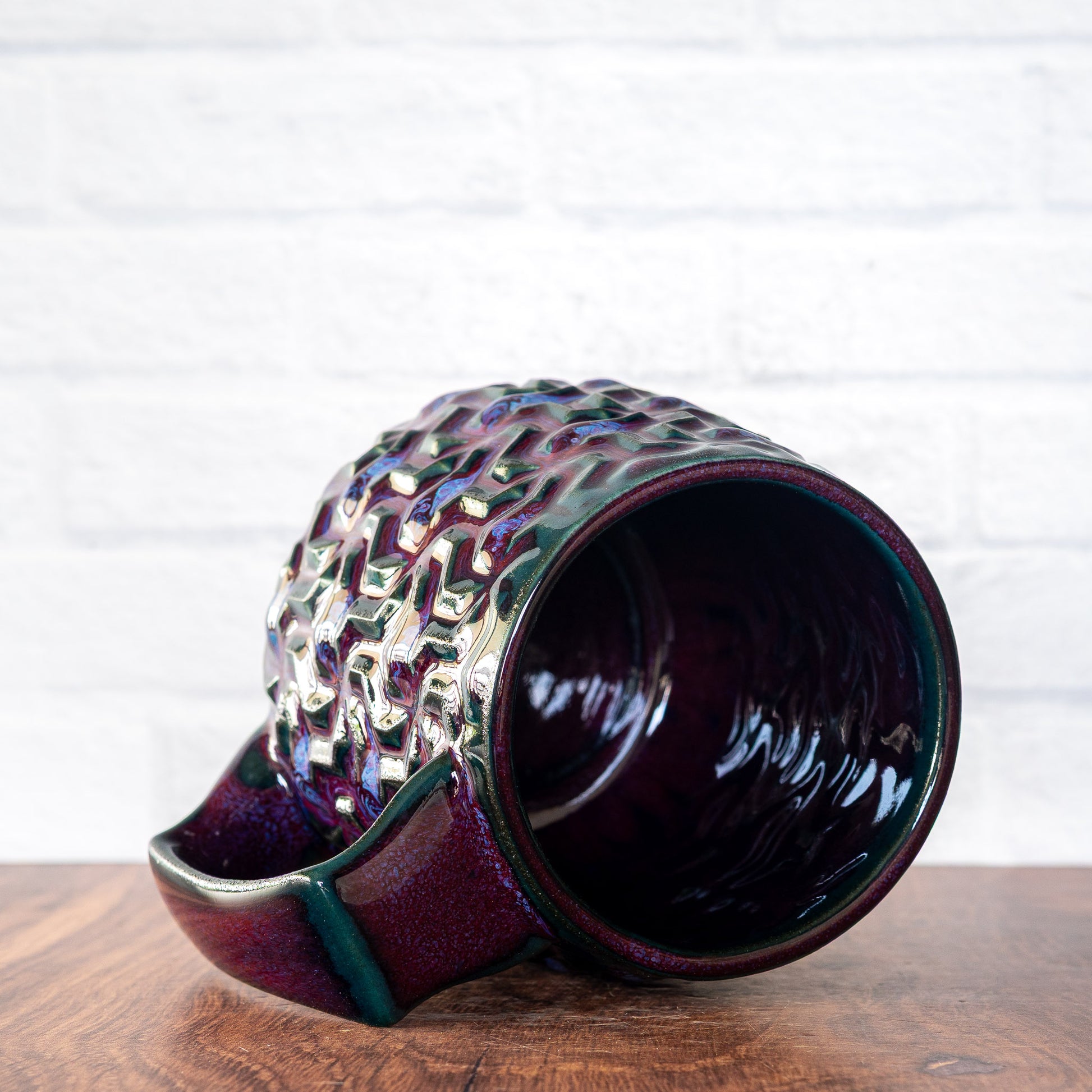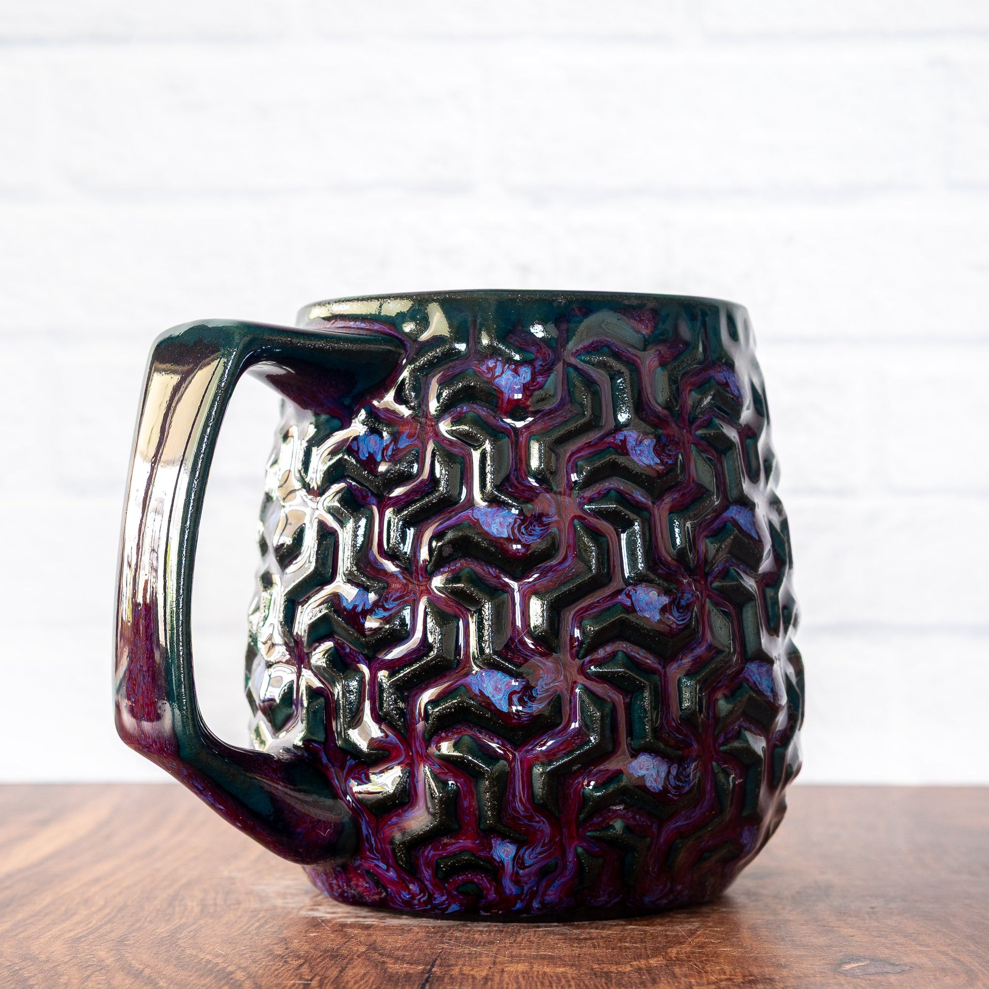 Each mug is made to be used, designed to be as comfortable and pleasing as possible, and finished in high-quality, beautiful, colorful glazes. Made from high-fired, strong, durable porcelain, food, microwave, and dishwasher safe.