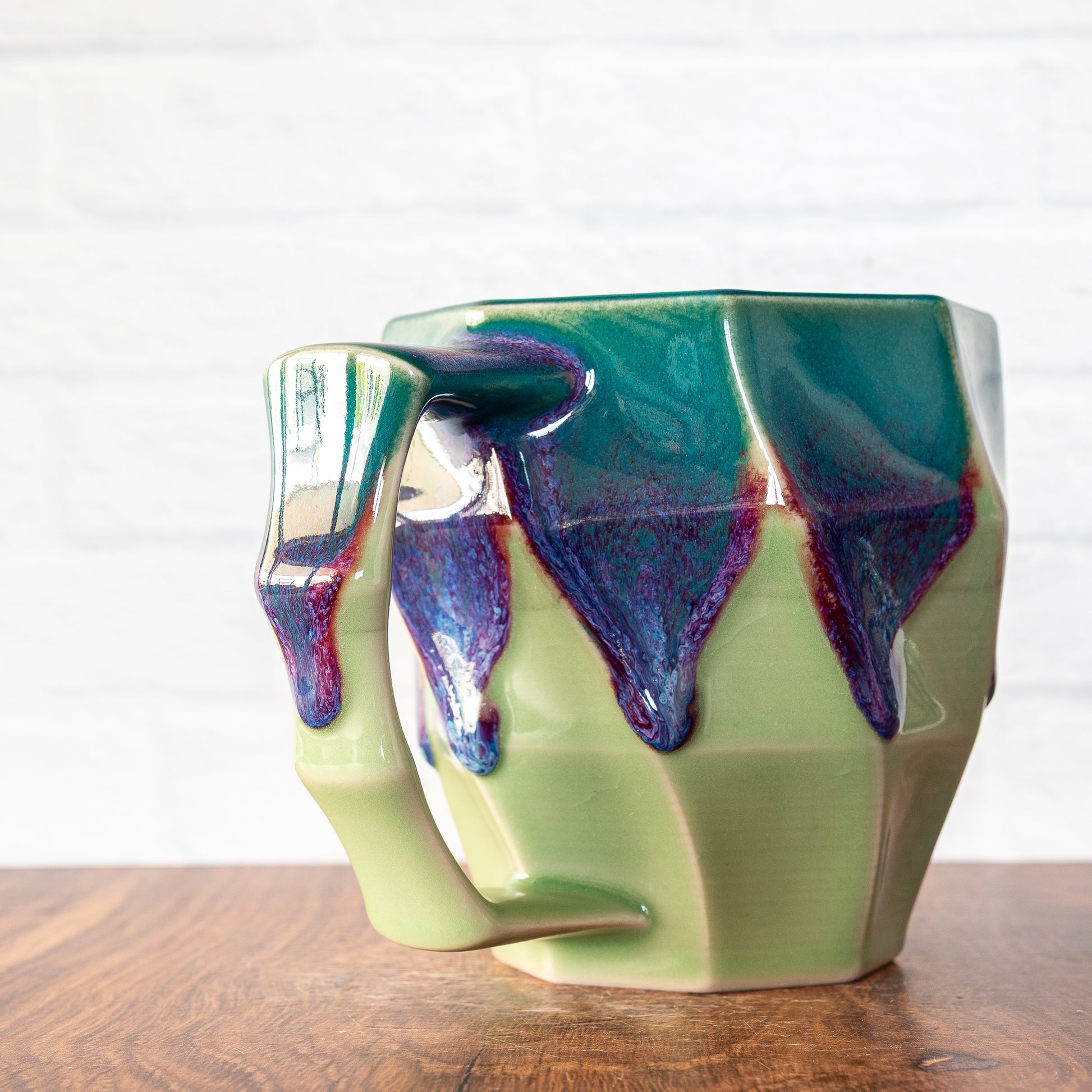 Each mug is made to be used, designed to be as comfortable and pleasing as possible, and finished in high-quality, beautiful, colorful glazes. Made from high-fired, strong, durable porcelain, food, microwave, and dishwasher safe.